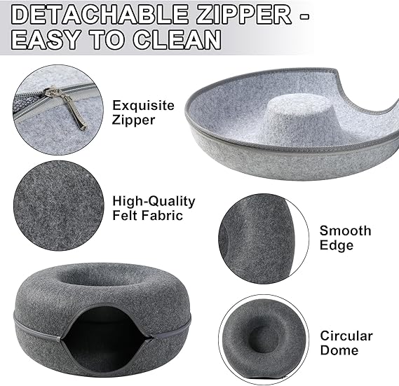 Give your feline friend the ultimate play and relaxation experience with the Bininl Cat Donut Tunnel! This versatile cat cave features a unique peekaboo design that encourages interactive play while providing a cozy retreat. Measuring 20 inches in diameter, the detachable round felt tunnel offers plenty of space for your cat to curl up or stretch out, and its soft, plush interior is machine washable for easy cleaning. The stylish dark grey color complements any home decor, making it a perfect addition to your indoor environment. Transform your cat's space with the Bininl Cat Donut Tunnel—where comfort meets fun!